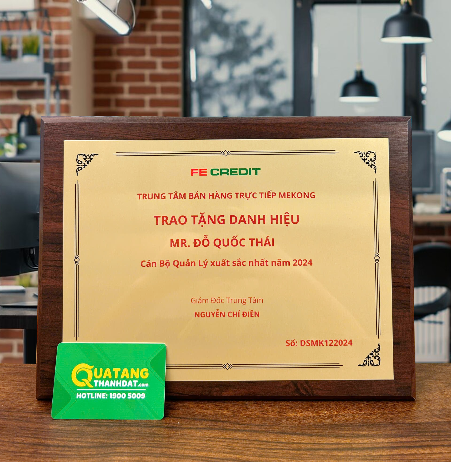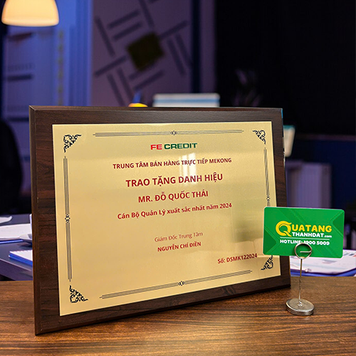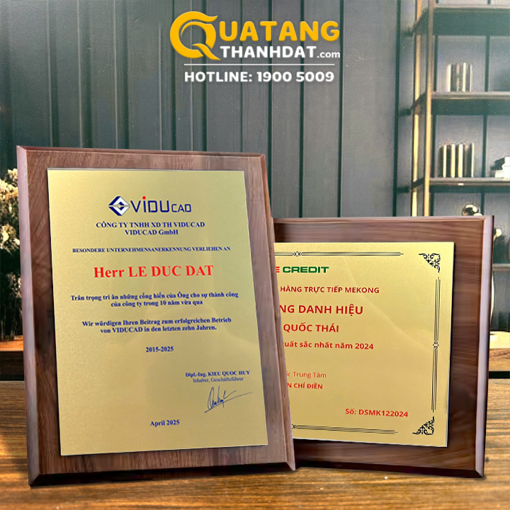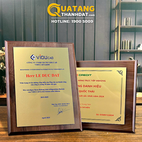 Bạn đang khó khăn trong việc tìm đặt làm bảng vinh danh theo yêu cầu, bạn lo lắng vì không biết giá bảng vinh danh có đắc không thì Quà tặng Thành Đạt sẽ là nơi bạn có thể yên tâm gửi gắm niềm tin vì chất lượng tốt gấp đôi giá thành. Thời gian hoàn thành cực nhanh chỉ khoảng 1-3 ngày sau khi khách chốt mẫu.