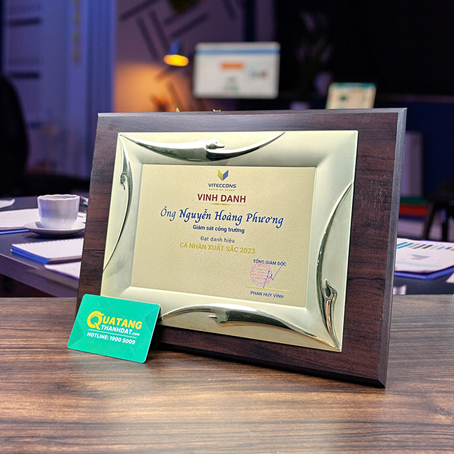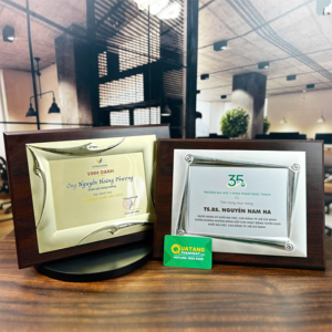 0931 134 880 (Zalo)Bảng vinh danh hay còn được gọi là kỷ niệm chương, thường được các doanh nghiệp, công ty hay các tổ chức dùng làm quà tặng để vinh danh sự cống hiến, sự nhiệt huyết của người nhận. Bảng vinh danh khung kim loại không chỉ ghi nhận thành tích cũng như sự đóng góp của người nhận mà còn tôn vinh sự trân trọng, là động lực to lớn để người nhận cống hiến hết mình cho công việc.