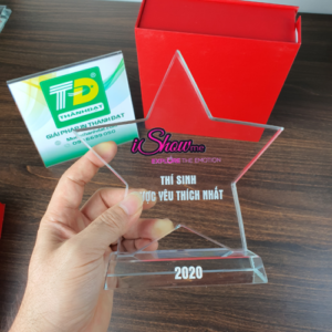Ngôi sao pha lê biểu tượng cho niềm hi vọng vào những điều tốt đẹp phía trước, hi vọng cho những may mắn sẽ đến trong tương lai. Pha lê hay thủy tinh là loại chất liệu đặc biệt có tính trong suốt, long lanh đẹp mắt tạo cảm giác sang trọng, quý phái. Cúp ngôi sao pha lê, thủy tinh là sản phẩm bán chạy tại Quà Tặng Thành Đạt ngay khi thiết kế vừa ra mắt.