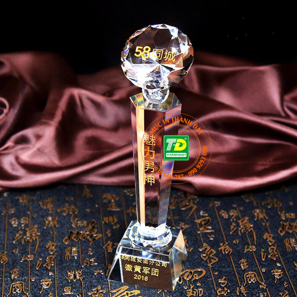Cúp vinh danh pha lê kim cương lấp lánh sang trọng, đẹp mắt